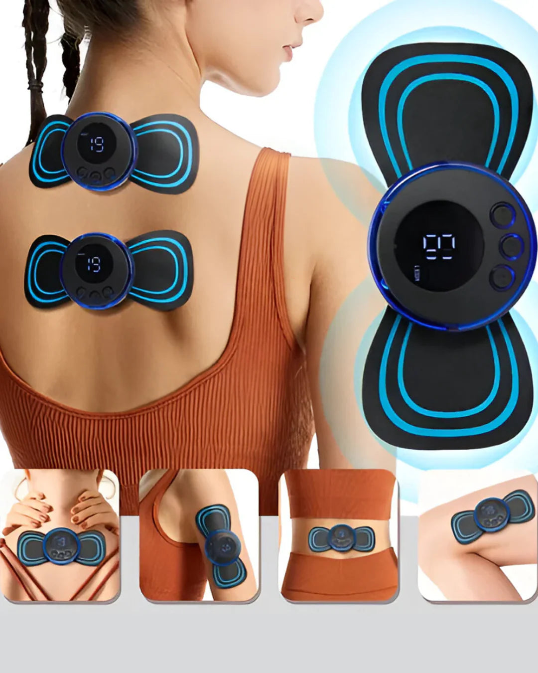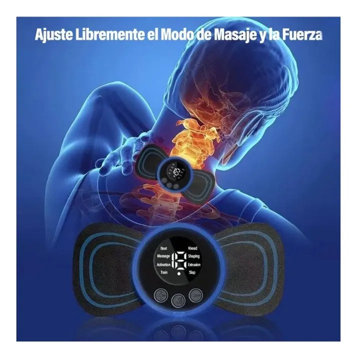 El Mini Parche Masajeador EMS utiliza impulsos eléctricos suaves para estimular los músculos, aliviar tensiones y mejorar la circulación en segundos.